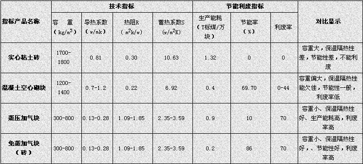 (附:免蒸加氣塊(磚)與幾種常用墻材性能對比表)